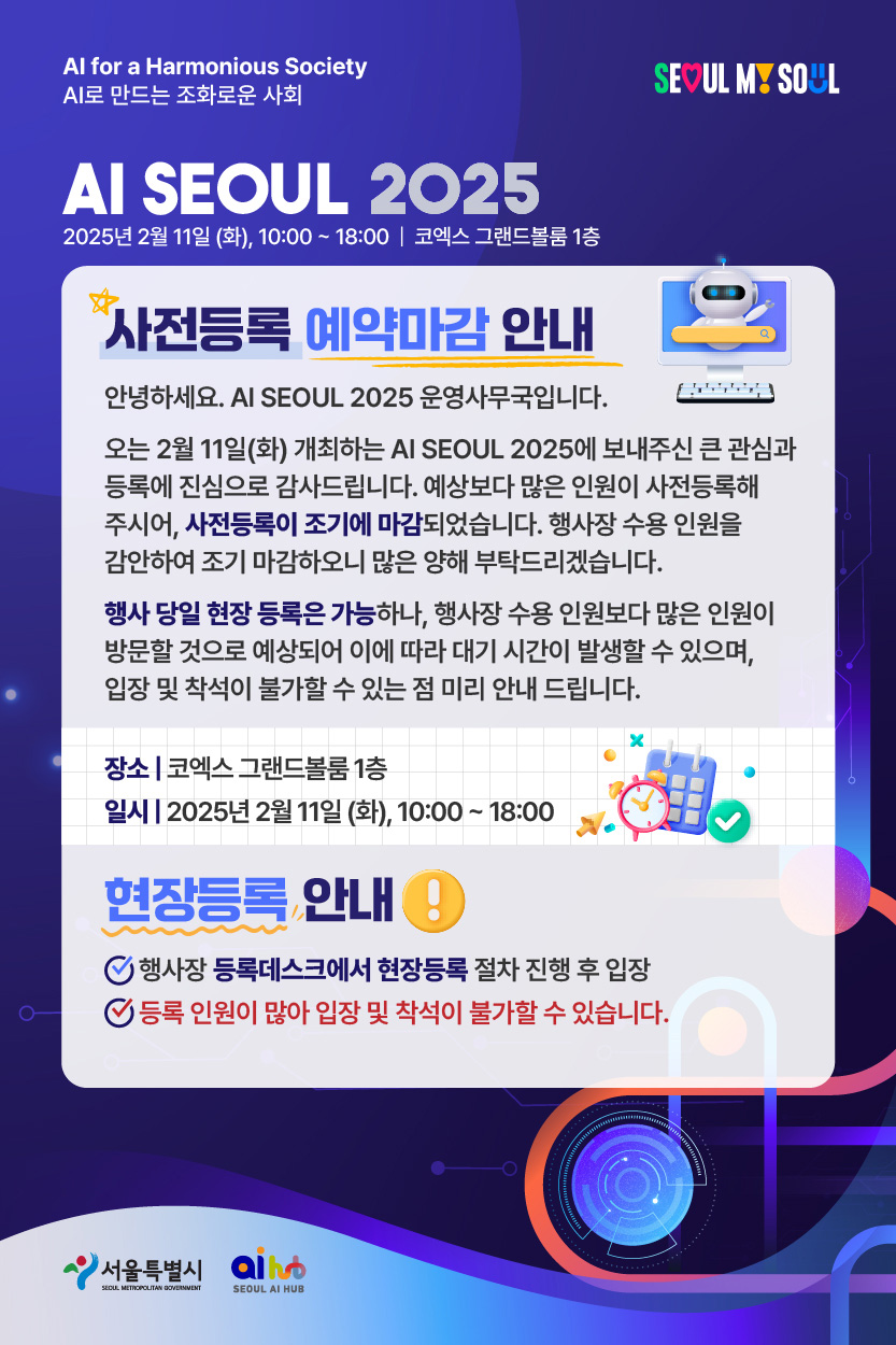³ª. ¡°¼¿ï AI Çãºê¡± (ÀÌÇÏ AI Çãºê)ÀÌ »çÀüµî·Ï ¹× ±âŸ ¹æ¹ýÀ» ÅëÇØ ¼öÁýÇÑ È¸¿øÀÇ Á¤º¸´Â ¼ºñ½º Á¦°ø¿¡ °üÇÑ °è¾à ¼º¸³ ¹× ÀÌÇà(ȸ¿ø ¹× ÄÁÆÛ·±½º Çà»çÀå ¹æ¹®ÀÚ º»Àνĺ° ¹× º»ÀÎÀÇ»ç È®ÀÎ µî), »õ·Î¿î ¼ºñ½º ¹× ÄÁÆÛ·±½º³ª Àü½Ãȸ, À̺¥Æ®¿¡ ´ëÇÑ Á¤º¸ ¾È³»(Á¦°ø), ȸ¿ø °ü¸®(ºÒ¸¸Ã³¸® µî ¹Î¿øÃ³¸®, °íÁö»çÇ× Àü´Þ µî)ÀÇ ¸ñÀûÀ¸·Î ¼öÁýµÇ¾î ÀÌ¿ëµÇ¸ç, AI Çãºê¿Í °ü·ÃµÈ Á¤º¸ ¹× Çà»ç µî¿¡ ÇÑÇØ ÀÏÁ¤°ü¸® ¹× ¿¬¶ôÁ¤º¸·Î Ȱ¿ëµË´Ï´Ù.